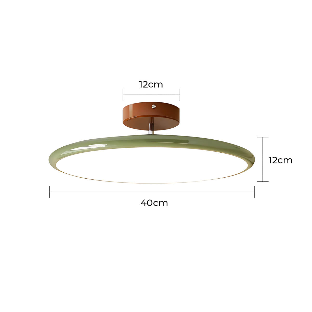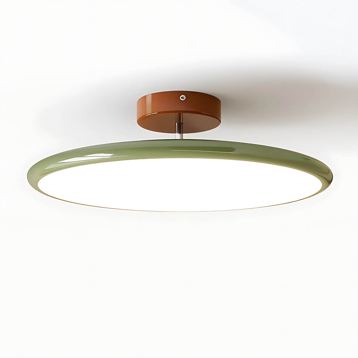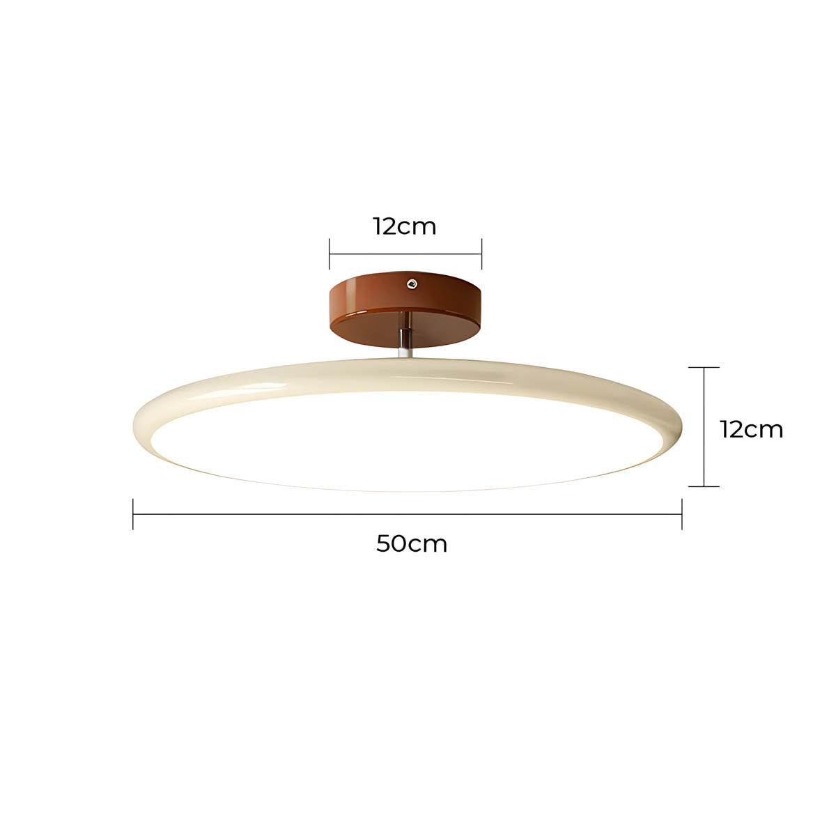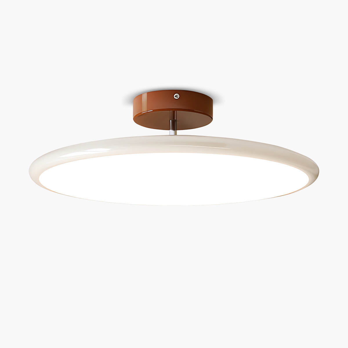 Crafted from durable iron and aluminum with a high-quality acrylic diffuser, this slim disc-style fixture floats just below the ceiling, creating a clean semi–flush mount silhouette that feels both minimalist and warm.